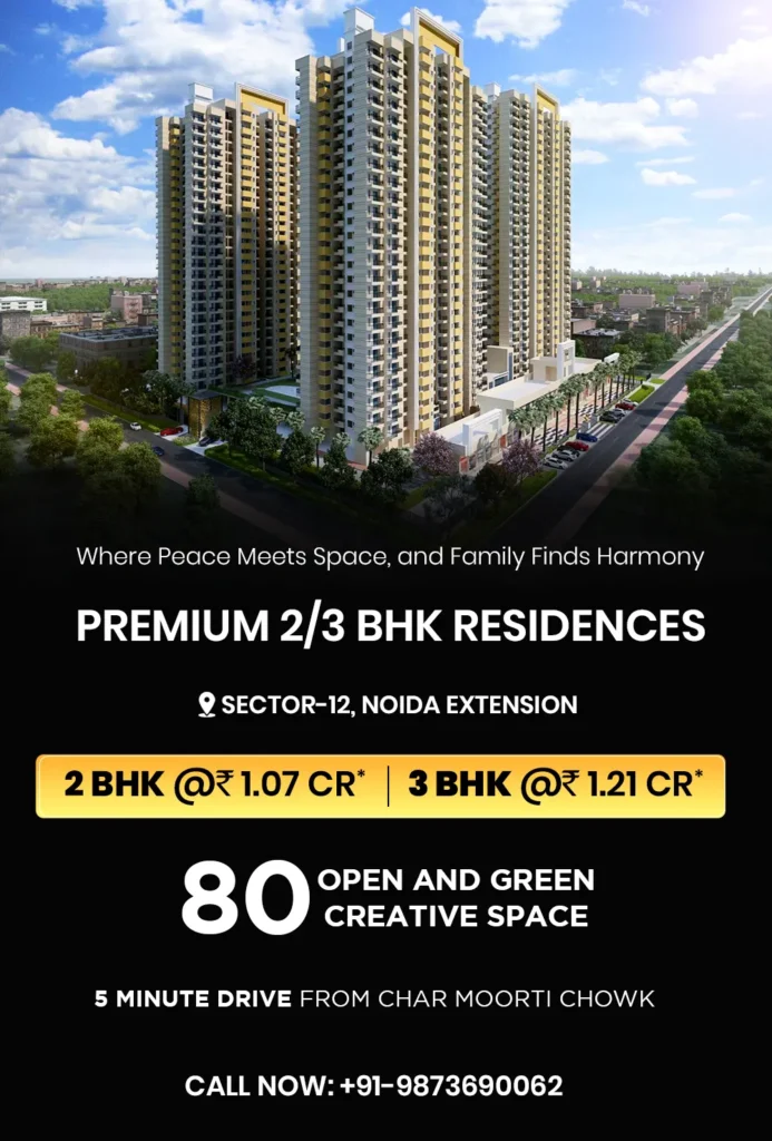 Civitech Strings is centrally located in the prime area of Noida having quick connectivity to banks, malls and commercial zones. Here, you will get a comfortable lifestyle in its well-made 2 BHK and 3 BHK luxurious apartments. Civitech Noida offers a safe and roomy living space surrounded by rich vegetation with a fully guarded community and four well-planned towers. The initiative is meant to provide happy living in the centre of a growing city so that daily serenity, security and luxury are given to the residents of this property. Civitech Strings is meant to provide neighbours with a nice living together with well chosen conveniences. The project offers children's play areas, a clubhouse, a gymnasium, well-kept gardens and lots of parking places among other things. From tastefully designed homes to open grassy areas, Civitech Strings Noida Extension has everything you need for a contented and laid-back lifestyle.